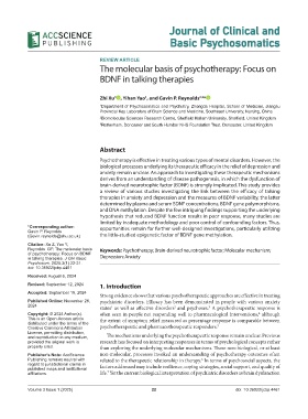 Reynolds GP. The molecular basis Keywords: Psychotherapy; Brain-derived neurotrophic factor; Molecular mechanism;