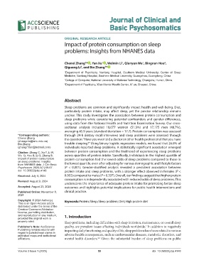 Copyright: © 2024 Author(s). Keywords: Protein; Sleep; Sleep problem; Diet; High protein diet
