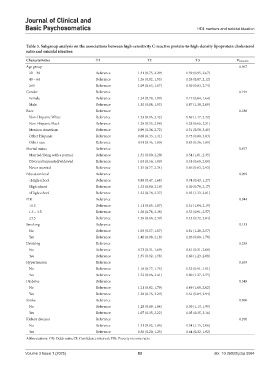 Table 3. Subgroup analysis on the associations between high-sensitivity C-reactive protein-to-high-density lipoprotein cholesterol