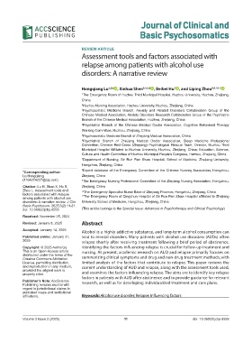 affiliations. Keywords: Alcohol use disorder; Relapse; Influencing factors