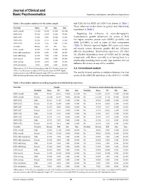 Table 2. Descriptive statistics according to gender and relationship experience