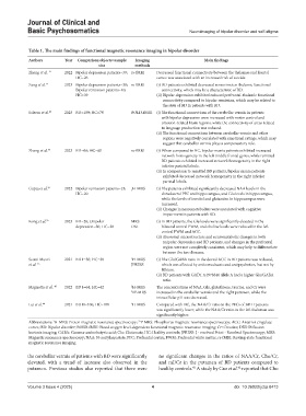 Zhang et al. 21 2022 Bipolar depression patients=39; rs-fMRI Decreased functional connectivity between the thalamus and frontal