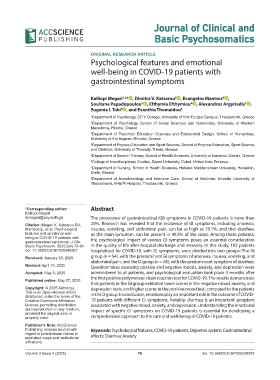 doi: 10.36922/JCBP025040007 hospitalized for COVID-19, with GI symptoms, were divided into two groups: The GI