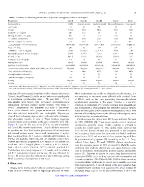 Table 3. Summary of laboratory parameters of all patients during presentation at our hospital