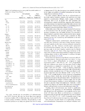 Other 6 (25.0%) 18 (75.0%) 24 (5.0%) Marital status was found to be significantly associated with self-