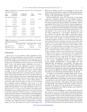 JOA PSF group (n=116) ASF group (n=142) P‑value traumatic CSCI. These results suggest that decompression surgery