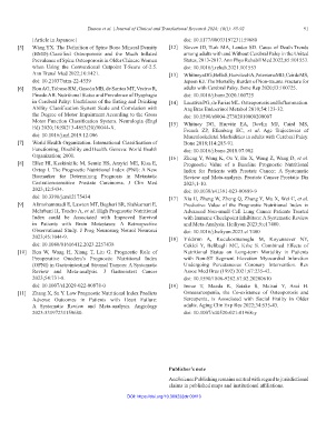 [10] Ren W, Wang H, Xiang T, Liu G. Prognostic Role of Nutritional Status on Long-term Mortality in Patients