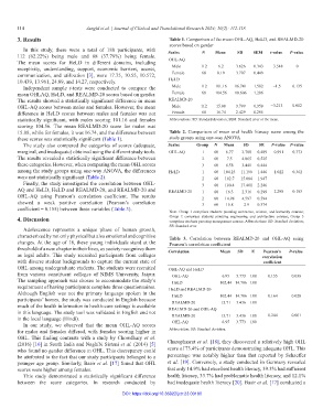 mean OHLAQ, HeLD, and REALMD-20 scores based on gender. Female 68 104.56 10.606 1.286