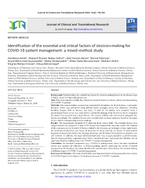 Alley, Qods Street, Tehran, Iran. significant decision-making factors for COVID-19 patient management.