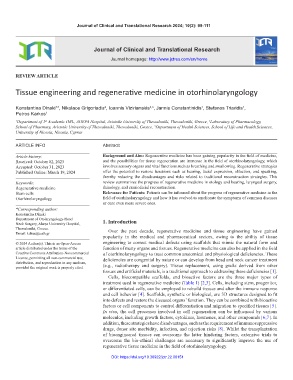 Received: October 02, 2023 and the possibilities for tissue regeneration are immense in the field of otorhinolaryngology, which