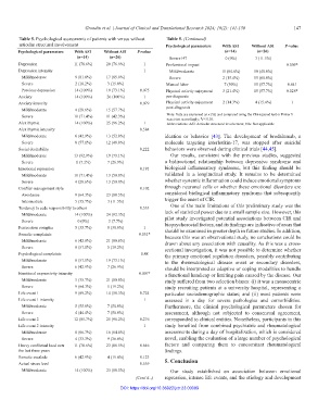 Table 5. Psychological assessments of patients with versus without Table 5. (Continued)