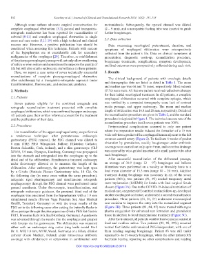 esophageal obliteration, which was confirmed by upper endoscopy. length of obliteration was 16.8 and 20 mm, respectively. Details of
