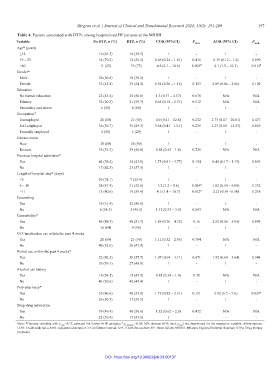 Variable No DTP, n (%) DTP, n (%) COR (95%CI) P COR AOR (95% CI) P AOR