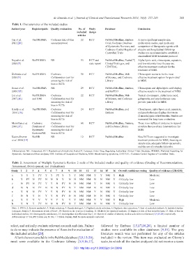 Table 2. Assessment of Multiple Systematic Review 2 scale of the included studies and quality of evidence (Grading of Recommendations,