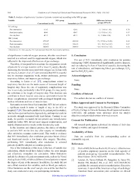 Table 5. Analysis of pulmonary function of patients randomized according to the NIV groups