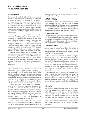 elevated D-dimer, CRP, LDH, and lymphopenia are 14.4 days, with 86.4% patients intubated (19/22). All