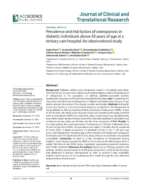 et al. Prevalence and risk factors of prevalence and risk factors of osteoporosis in diabetic individuals above 50 years of age