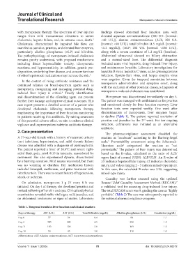 with meropenem therapy. The spectrum of liver injuries findings showed abnormal liver function tests, with