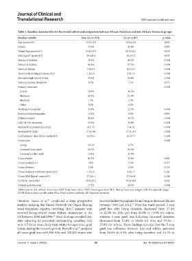 Table 1. Baseline characteristics for the overall cohort and comparison between African‑American and non‑African‑American groups