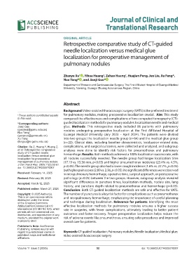 † These authors contributed equally for pulmonary nodules, making preoperative localization crucial. Aim: This study