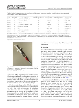 Table 1. Patients’ characteristics at the enrollment, including prior treatments, duration, wound location, wound depth, and