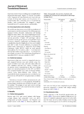 Questions covered tobacco smoking, type of neighborhood Table 1. Demographic characteristics of patients with