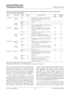 Table 2. Comparison of cancer types and stages detected in randomized controlled trials for occult cancer in patients with