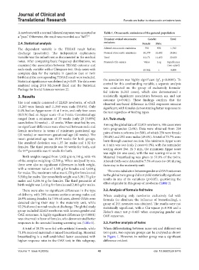 for males. The maximum value was 6,150 g for females and The cross-tabulation between gender and OAE outcomes