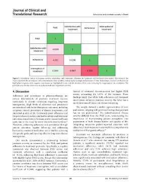 Figure 1. Correlation matrix of psoriasis severity, satisfaction with treatment, adherence to treatment, and treatment interruption. The values in the