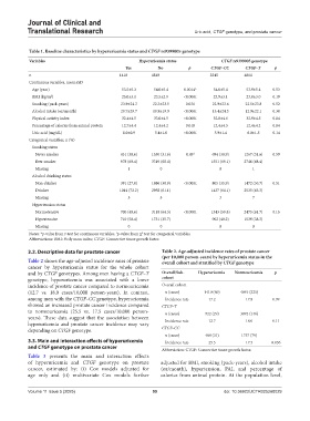 Table 1. Baseline characteristics by hyperuricemia status and CTGF rs9399005 genotype