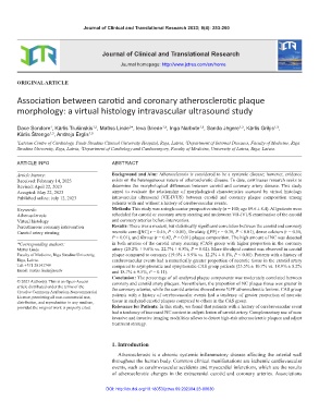 Faculty of Medicine, Riga Stradins University, plaque compared to coronary (19.6% ± 9.9% vs. 12.2% ± 8.1%, P < 0.01). Patients with a history of