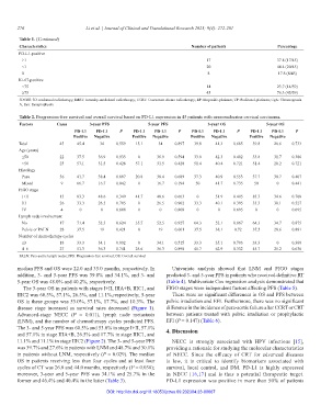 former and 46.4% and 40.4% in the latter (Table 3). PD-L1 expression was positive in more than 50% of patients