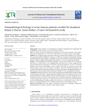Accepted: July 21, 2023 enrolled for duodenal biopsy from June 2015 to May 2020 in four centers in Najran, Saudi Arabia.