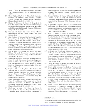 Johnson N, Luca N, et al. Immunization Status and Barriers Smink GC, Swart JF, Wulffraat NM, et al. Safety of