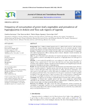 Received: 07 August, 2023 countries like Uganda currently experiencing substantial rises in the metabolic disorder. Current