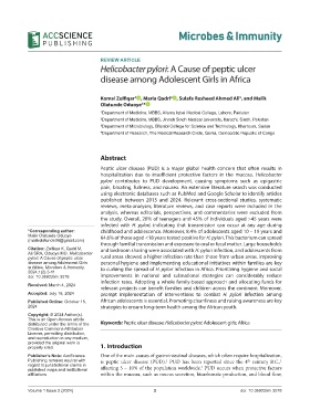 Citation: Zulfiqar K, Qadri M, and bedroom sharing were associated with H. pylori infection, and adolescents from