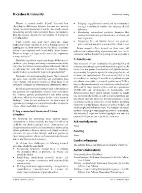 models may not fully replicate human disease mechanisms. • Developing personalized probiotic therapies that