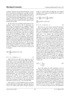includes interactions between genes and their regulators, regulation P[i] in Equation III has a regulation value