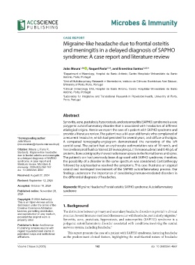 Accepted: October 18, 2024 Keywords: Migraine; Headache; Frontal osteitis; SAPHO syndrome; Autoinflammatory
