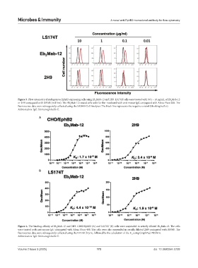 Figure 3. Flow cytometry of endogenous EphB2-expressing cells using Eb Mab-12 and 2H9. LS174T cells were treated with 0.01 – 10 μg/mL of Eb Mab-12