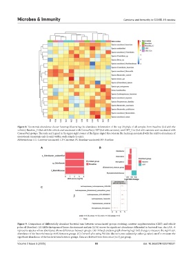 CoronaVac) groups. The scale and legend in the upper right corner of the figure depict the colors in the heatmap associated with the relative abundance of