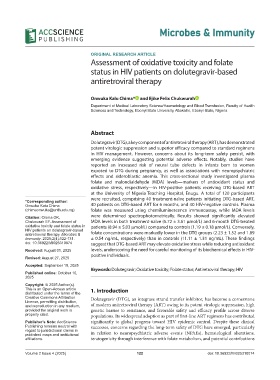 Chukwurah EF. Assessment of MDA levels in both treatment-naïve (5.72 ± 3.61 µmol/L) and 6-month DTG-treated