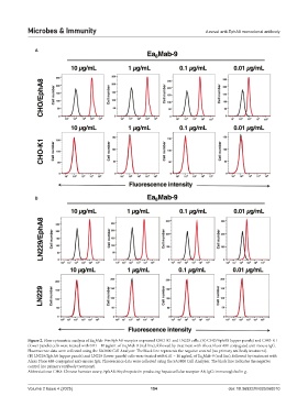 Figure 2. Flow cytometric analysis of Ea Mab-9 in EphA8 receptor-expressed CHO-K1 and LN229 cells. (A) CHO/EphA8 (upper panels) and CHO-K1