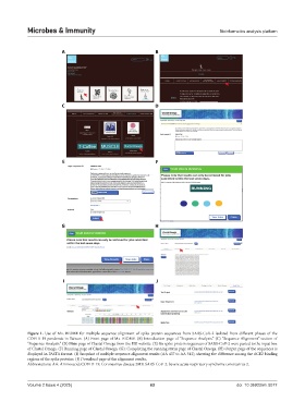of Clustal Omega. (F) Running page of Clustal Omega. (G): Completing the running status page of Clustal Omega. (H) Output page of the sequences is