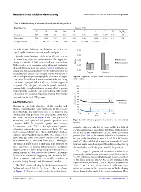as-received and spheroidized powder particles were Figure 9. XRD diffraction patterns of as-received and spheroidized