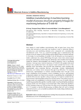 Published Online: March 30, 2022 linkage model was established to correlate material structures of metallic AM and
