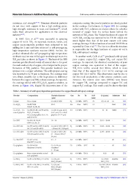 Table 1. Summary of cold spray deposition parameters for copper‑based cold spray coatings