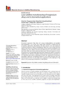 Accepted: November 23, 2022 Keywords: Magnesium alloy; Additive manufacturing; Biological behavior; Biomedical