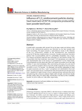 2022 Keywords: Laser powder bed fusion; Additive manufacturing; Inconel 718; Y O
