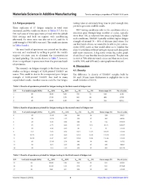 Table 6. Results of specimens printed for fatigue testing in the second round of fatigue test